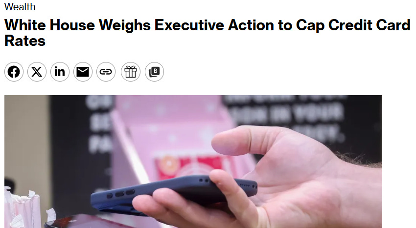 I put “executive action” in quotes above because the article makes clear that nobody, including the admin, has any idea what that actually means here. But early guesswork indicates that “executive action” might involve the Trumps using the promise of deregulation as a carrot to incentivize the lowering of credit card rates (emphasis added):
