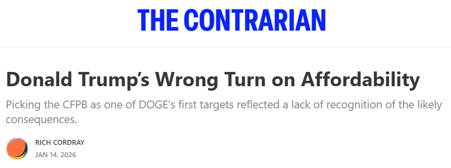 In The Contrarian, former CFPB Director Richard Cordray connects the dots on how a hobbled CFPB hurts affordability for working families (emphasis added):