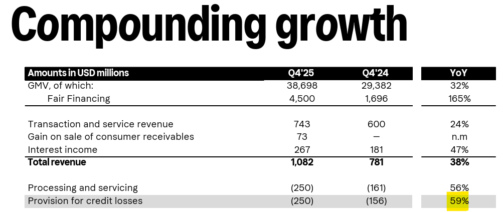 What went wrong? The culprit seems to be that Klarna increased its provision for loan losses (that is, the amount it’s expecting to lose on bad loans) by 59 percent (highlight added, this image is from their earnings report):