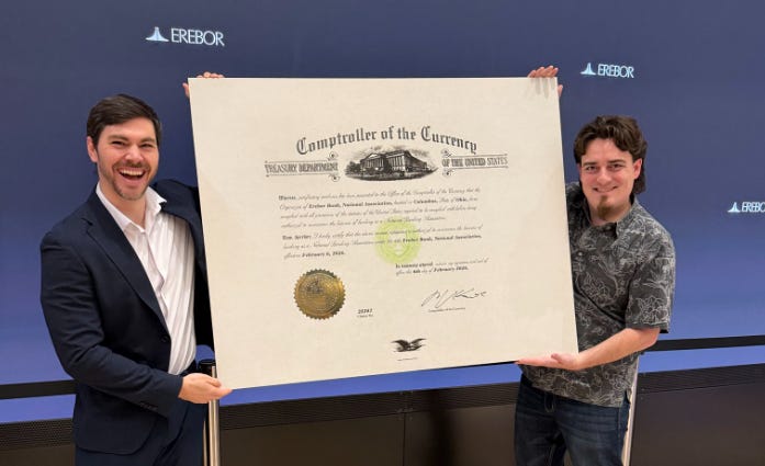 For those wondering how critically the OCC is going to supervise the Trump-linked “Erebor” Bank, to which the OCC just gave a bank charter: turns out the OCC also gave Erebor’s founder a novelty-sized physical copy of that bank charter.