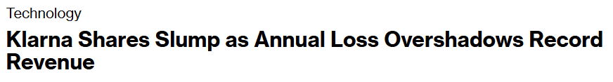Shares in the payments firm are on course for their worst day since listing after Klarna reported a pretax loss of $241 million for last year, even as it pulled in record revenue.
