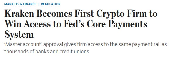 Kraken’s banking unit has won access to the Federal Reserve’s core payment systems, making it the first crypto firm to be able to move money on the same rails used by thousands of banks and credit unions.